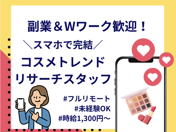 | 職種 | フルリモート大人気!配信事業のコスメ情報収集スタッフ |